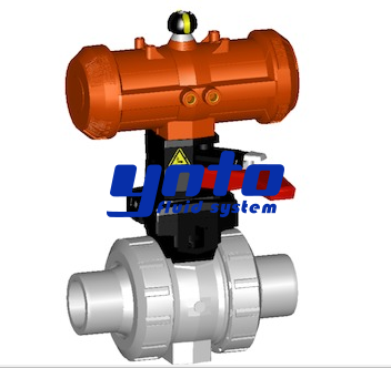 瑞士 +GF+ 230型氣動球閥 PVC-C FO(常開) 帶手動應急手柄 帶膠粘插端 公制